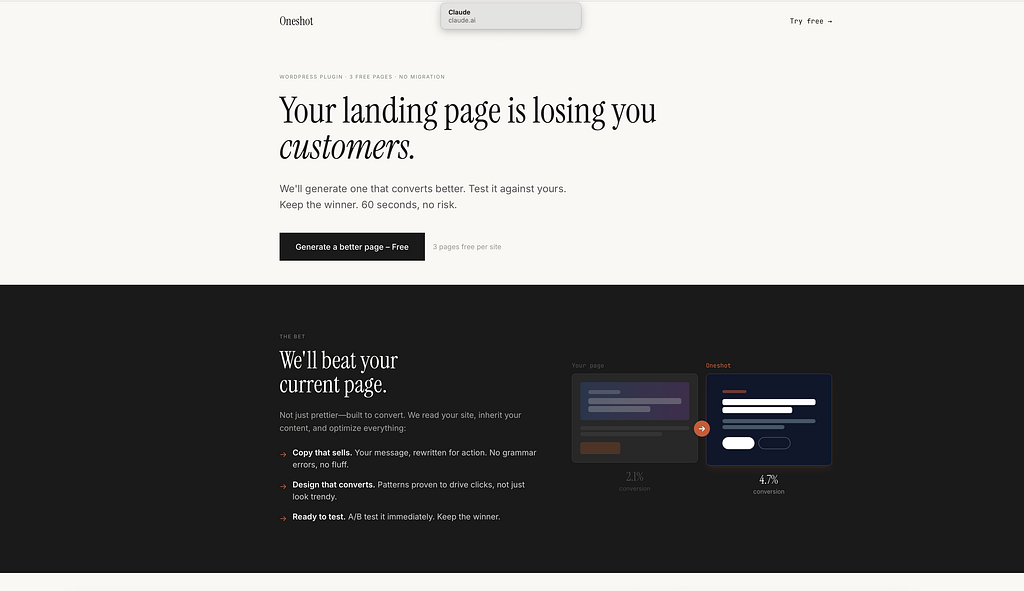 Another experiment, OneShot, was interesting. Most people struggled to see a production use-case, which made me appreciate more the initial traction we got for FreshRank.